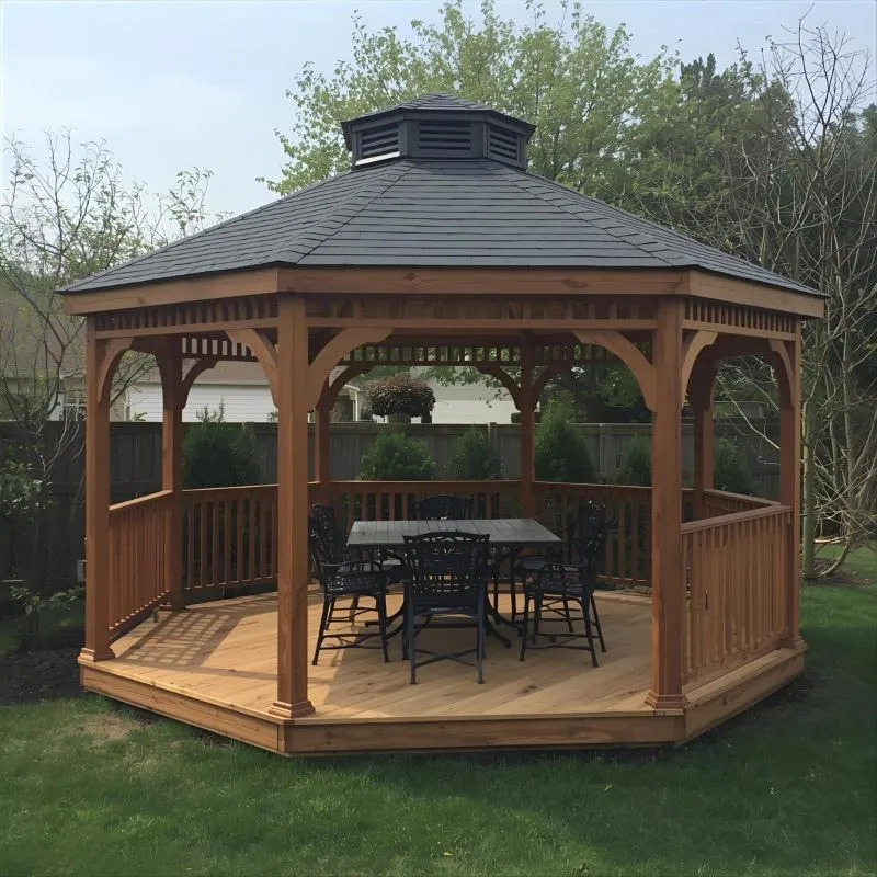 A gazebo serving area creates a versatile and charming outdoor space perfect for any gathering. Whether for a family barbecue, garden party, or intimate wedding, it adds shelter, ambiance, and style to every event. With serving tables, seating, and decorative lighting, it transforms into a cozy lounge or elegant dining spot. Its open yet protected design connects guests with nature while shielding them from the elements—ideal for day or evening events. A gazebo’s flexibility and charm make it a valuable addition to any outdoor space.